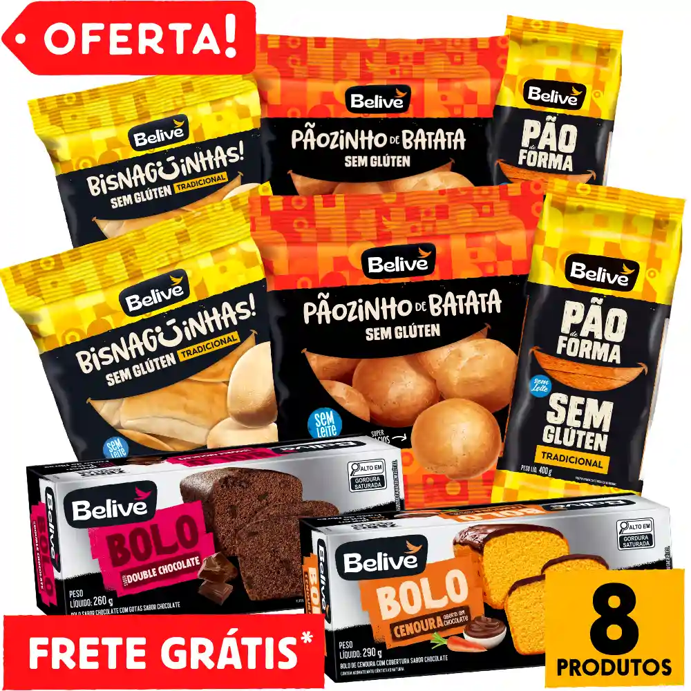 Kit Café da Manhã Sem Glúten Sem Lactose Sem Leite FAMÍLIA Belive – 8 Unid